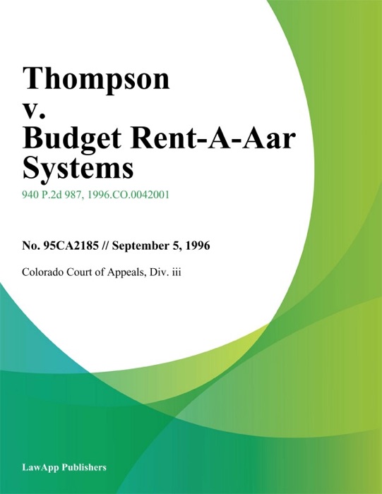 (Download) "Thompson v. Budget Rent-A-Car Systems" by Div. Iii. Colorado Court of Appeals # Book PDF Kindle ePub Free